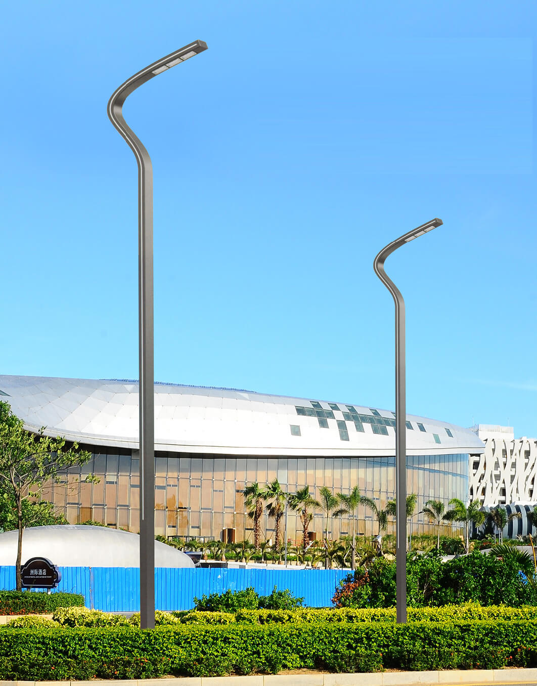 3、灯杆为钢结构,经热镀锌处理后表面聚酯粉体涂装;