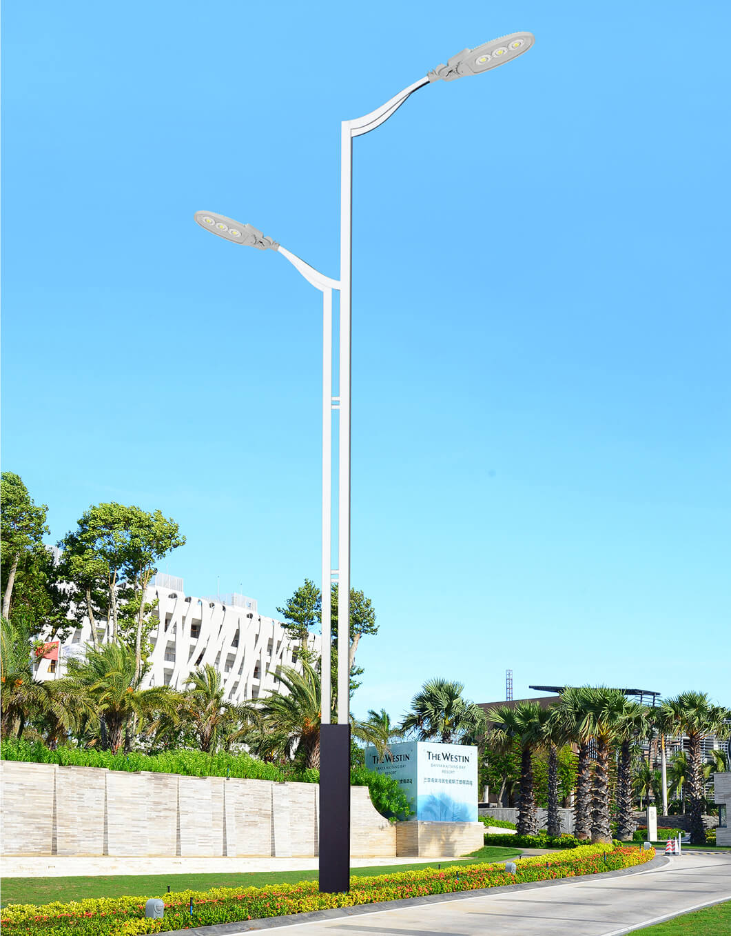 3、灯杆为钢结构,经热镀锌处理后表面聚酯粉体涂装;