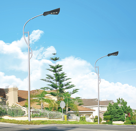 单杆路灯,高度6-12米,采用Q235钢材整体内外热镀锌,光源采用美国普瑞芯片。光源规格为 60W 80W 100W 120W 150W 180W